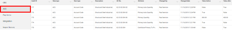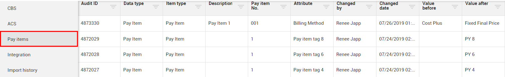 You can access the Pay Item Audit Log by selecting Pay Items from the left side menu.
