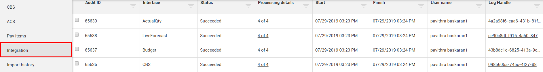 You can access the Integration/Sync Audit Log by selecting Integration from the left side menu.