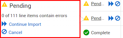 When an import is in a Pending status, this means that further action is needed to complete the Excel file import.