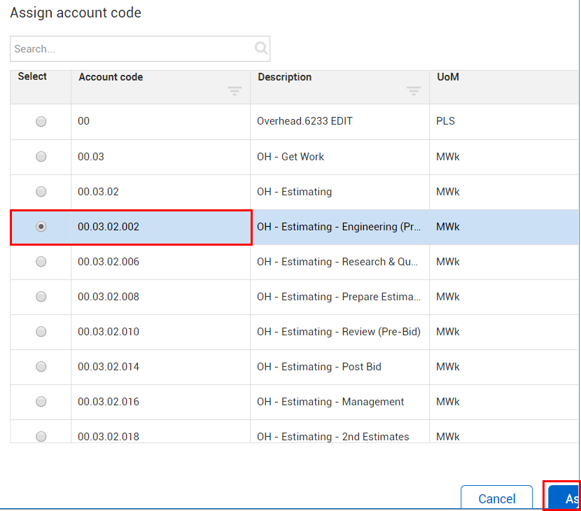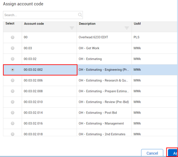 In this case, there is an issue with the account code assignment, as the pop-up hover suggests.