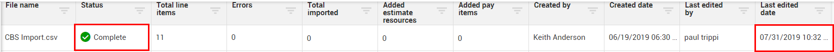 The Import history page now shows that the imported file is now successfully imported and updates the Last edited date.