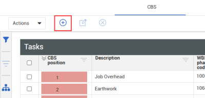 1. From the CBS tab of Control > Workspaces, click the Add Cost Item icon on the top left toolbar.