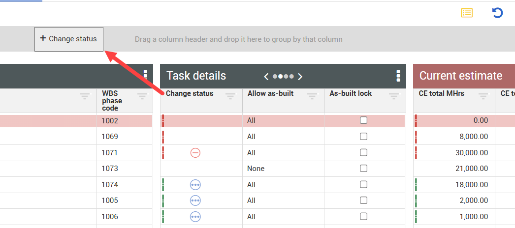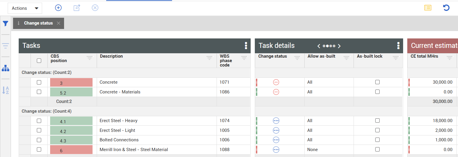 1. On the CBS register tab, select the Group Columns icon on the right toolbar.