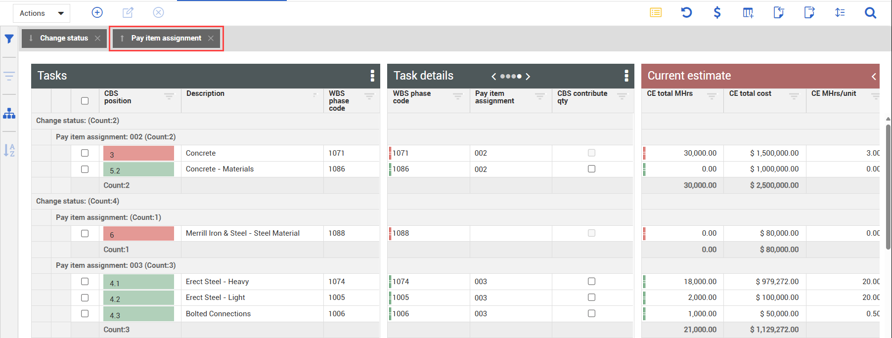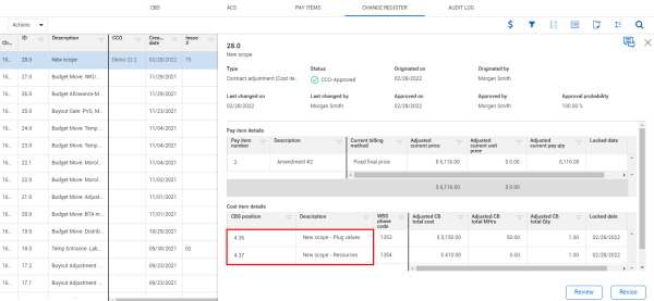 Revise the change order to make any further adjustments, such as associating pay items to your cost items. Notice how the cost category assignments have all come over to Control that originated from the change document.