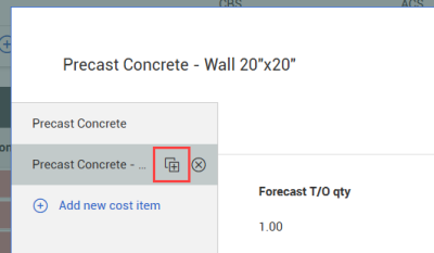 To copy the details of a new cost item record, click the Copy cost item icon.