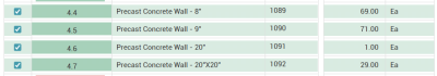 • None – Cost item does not accept cost or quantities. This is typically seen in Superior cost items