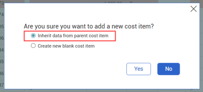 3. Select Inherit data from parent cost item, and then click Yes.