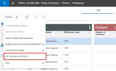 The Required cost items feature lets you create standardized or commonly used cost items at the organization level, and then add them at the project CBS level. Changing any of the required cost items at the organization level, such as the account code or UOM, also updates the cost items at the project level.