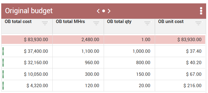 The original budget (OB) is a snapshot of the project plan in its original state prior to execution. It is a baseline used for comparison as the project progresses. You cannot edit your original budget values; they are read-only in the CBS register, available for reference only. After the original budget is set, it will not change unless you unlock it.