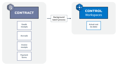 InEight Contract can record actual costs in the form of goods receipts, accruals, invoice receipts, or payment forms. You can configure your project settings to pull these actual costs into Control through a batch process.