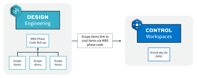 In InEight Design, engineering deliverables are broken down and tracked as scope items. As work on scope items is completed, team members can claim partial or total quantity values. Scope items are linked to cost items through the WBS phase code. As a result of a Get Quantities sync, scope item quantities update the actual quantity for their associated cost items.