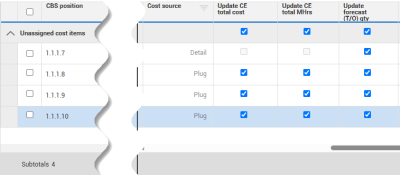 Select cost items to update