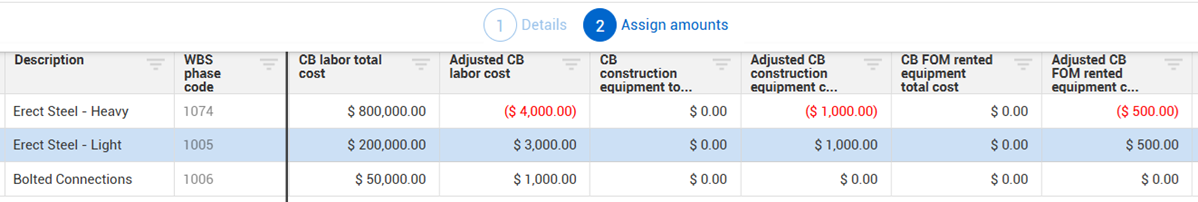 The Adjusted CB cost subtotal must equal zero to submit. In other words, the cost adjustments must be net-zero to proceed.