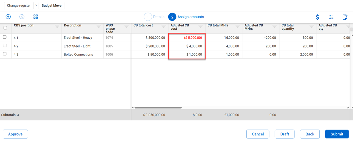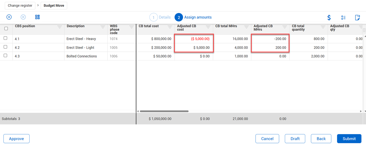 • Reporting clarity — Helps financial and project controls teams track budget changes as purposeful reallocations rather than isolated changes.