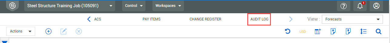 As you utilize the sync option, you have the option to go back and audit the status of the actions taken. The Audit Log Integration section shows all sync processes that have been initiated and their status. The Integration section captures whether the sync process between InEight Control and the ERP system was completed successfully. You can also view how long the sync process took to complete and who requested the sync.