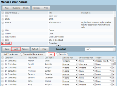 Setting the persons access levels to the various modules of InEight Document.