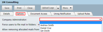 A Company Administrator can be assigned within each participating company to allow them to manage some administrative functions.
