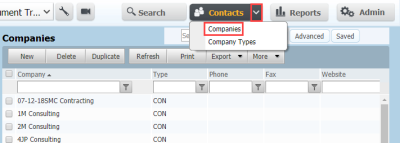 The ability for a company to create both new companies and contacts can be enabled at a project level by InEight. Once the feature is enabled at a project level, the project administrator can assign the function to company administrators via the Companies window.