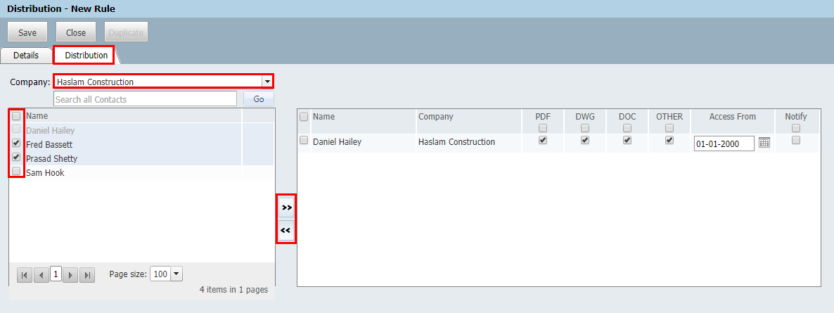 Select the users within the selected company to be added to this Distribution Rule.
