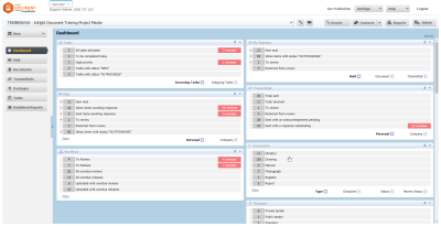 The Dashboard is the home screen within InEight Document. There are 4 areas in the Dashboard.