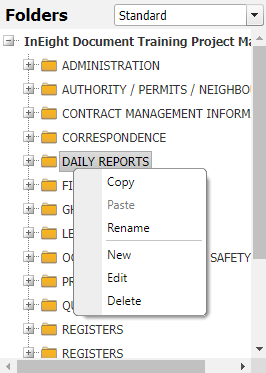 InEight Document incorporates the use of Folders as an additional option for indexing mail. By using the File in Folder feature, a “copy” of a mail can also be seen to appear in one or more Folders, where an existence of a Folder is similar to the concept of a multi-level Folder Structure.