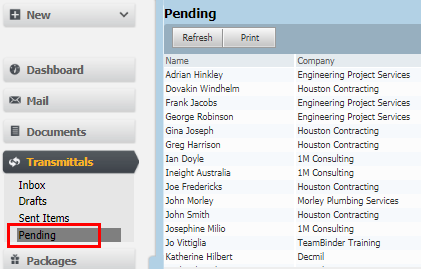 Pending Transmittals