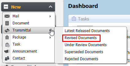 Initiate a transmittal of revised documents using Create Pending Transmittals within the Pending transmittals screen.