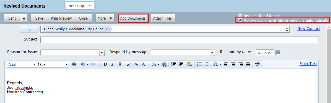Choose to Notify recipients of future revisions automatically (if applicable).