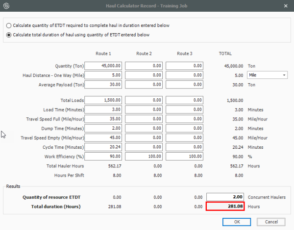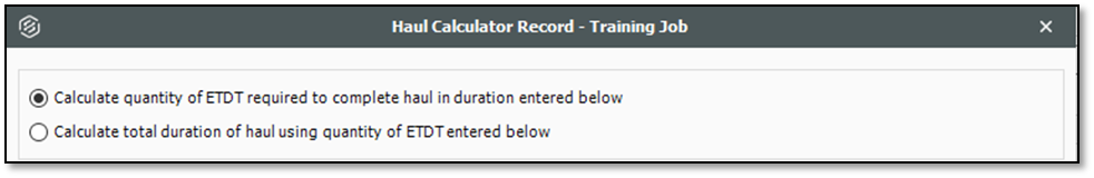 On the Haul Calculator, select the Calculate total duration of haul using quantity of ETDT entered below radio button.