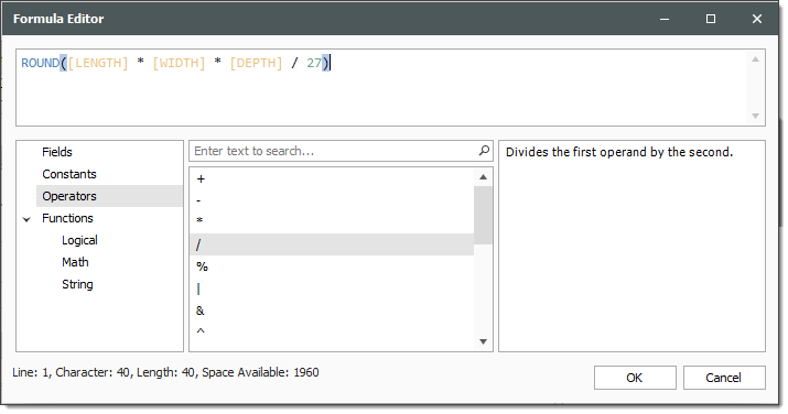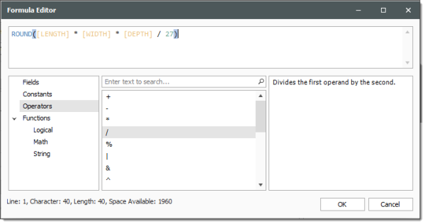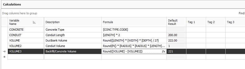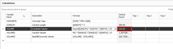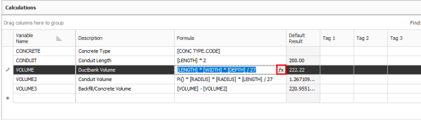 - In the Calculations data block, click on the formula editor for the “Volume” calculation.