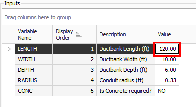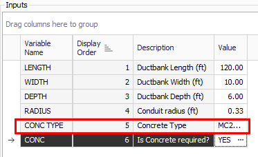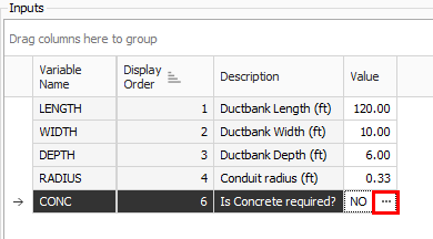 On the CONC input, select the ellipses next to the Default Value.