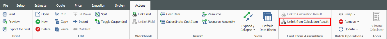 To ensure that the logic used in the calculation of a Cost Item Assembly is retained, employed Cost Item Assemblies are not directly editable in the CBS Register. To customize the results of an employed Cost Item Assembly, you can disassociate it from the originating Cost Item Assembly logic as per the following steps.