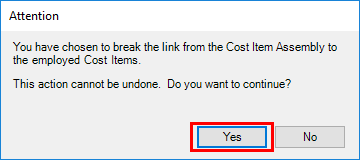Breaking the Link to a Cost Item Assembly