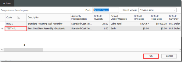 Insert Cost Item Assemblies