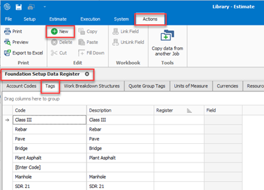 From the Foundation Setup Data Register, select the Tags tab.