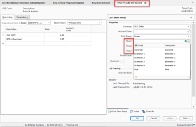 Assign Tags on the Pay Item Record