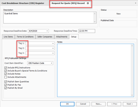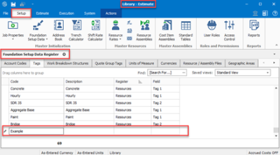 Users can take advantage of validated and non-validate tags in every register within estimate. It will be up to the organization on how they want to best leverage tags in each register.