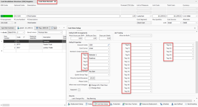 Select the Cost Item Setup default data block in the lower right portion of the record.