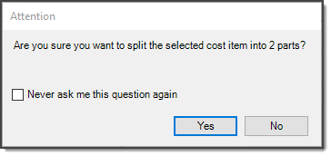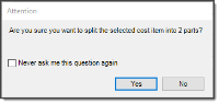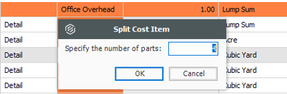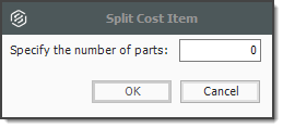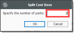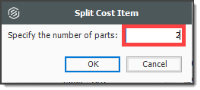 When the Split Cost Item data box appears, enter in the number of parts that you want to split the selected cost item into.