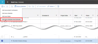 Estimate and InEight Schedule integration - You can now select InEight Schedule as your integrated schedule in Estimate.
