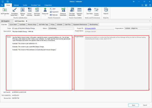 Notes field for estimates - A new Notes field has been added to the Estimate job properties page to add additional estimate related information.