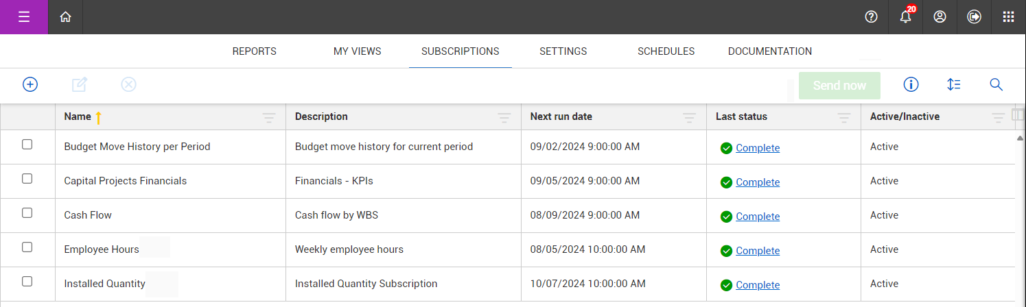 Users with the correct permissions can run reports as needed or create subscriptions for themselves or other users. Through subscriptions, a user receives reports saved as views directly via email.