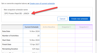 Now that the copy has been created, you can configure it as a baseline schedule.
