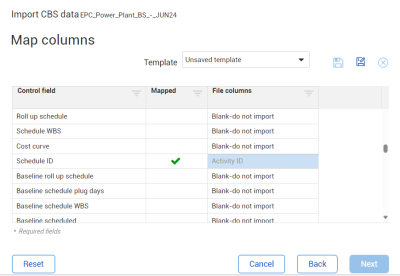 Control maps imported data based on WBS Phase Code or CBS position. Ensure that at least one of these criteria is included in the source document.
