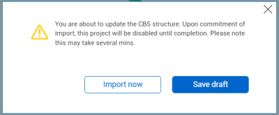 The project controller receives a final warning before completing the import. She clicks Import.