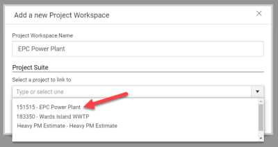 Select a project from the Project Suite drop-down menu. Be sure to select the same project that includes the current estimate.