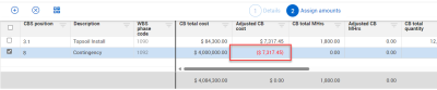 For Contingency, she inputs a negative amount in the Adjusted CB cost field.