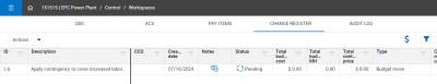 On the Change Register tab, the project controller can see the pending budget move.