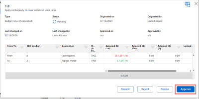 The team member who approves budget changes (for example, a project manager) can open the item for review.