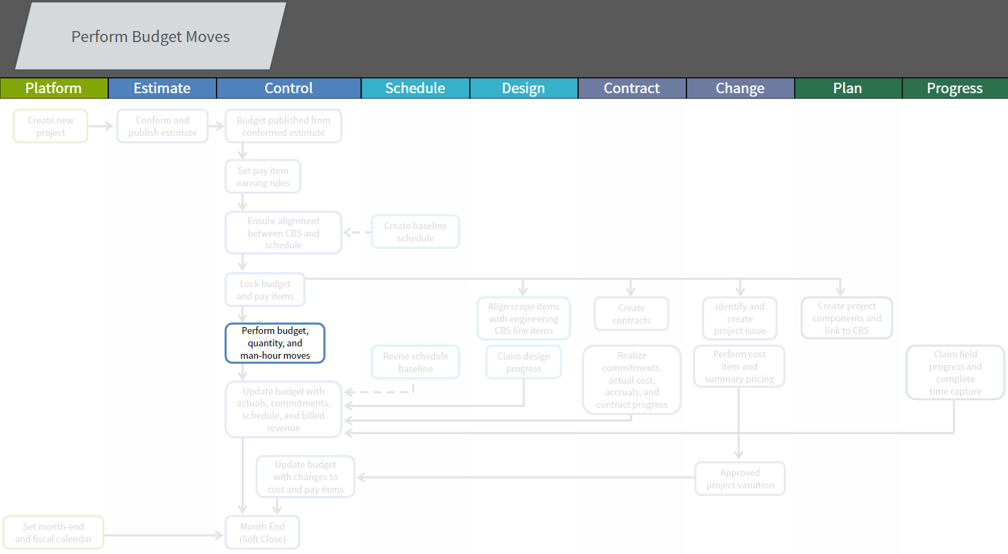 Access the following links for additional information on budget moves in InEight Control: